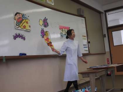 2校時に東代町診療所の安藤先生(歯科校医)から歯科巡回指導がありました。虫歯になるまでの過程と予防方法をわかりやすく絵も交え説明してくださいました。