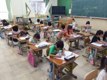 1年生はまだ漢字を習っていないので,ひらがな名人大会ですが,みんなとてもていねいに「おれ」「はね」「はらい」などにも気を付けてがんばっていました。