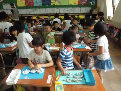 その日の給食メニューがカレーうどんということもあり,待ち遠しいのかうどんを作る子が多かった気がします。