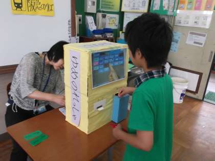 切符を入れた後、取るのを忘れないでねと確認しました。