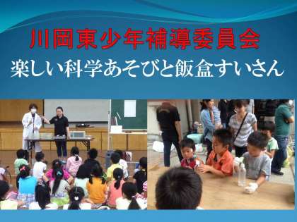 4日(土)少年補導委員会の皆様による楽しい科学遊びと飯盒すいさんが本校で行われ,多くの子ども達と保護者の皆様が参加されました。体育館ではペットボトルを使った不思議な科学遊びを楽しみました。また昨年度,地域の皆様につくっていただいたかまどを使っての飯盒すいさんでは子ども達に火をつける体験をさせていただきました。