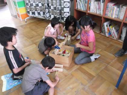 今日のような雨の日の休み時間は積み木をしていることが多いです。
