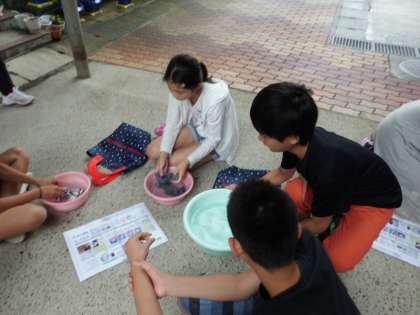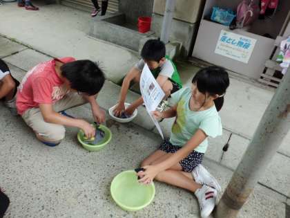実際に洗い,子どもたちは手洗いの大変さを実感した様子でした。