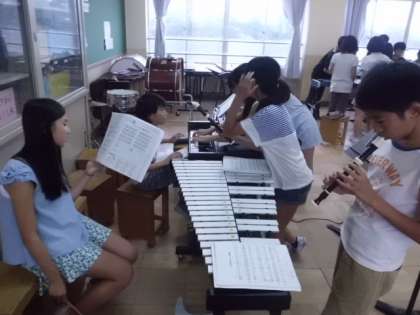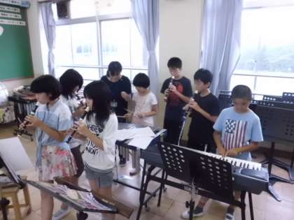 合奏に取り組んでいます。パートに分かれて自主的に練習していました。6年生にもなるとお互いにアドバイスし合ってしっかりできますね。全ての楽器を合わせて演奏する日が楽しみですね。