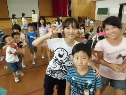 今日は1年生と6年生の『ペアタイム』活動でした。一緒にドッジビーをしました。6年生がやさしく1年生の手を引いて,自分たちも1年生も楽しめるようによく考えて活動していました。体育館から教室に帰るとき,みんなとても満足した笑顔で,教室まで手をつないで帰っていきました。