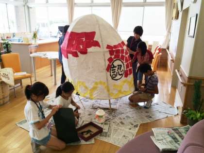 京都桂川園でお世話になっているキッズボランティアも連日がんばっています。灯ろうづくりや,ハチマキづくりなど意欲的に取り組んでいました。