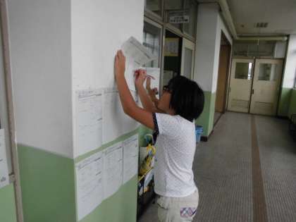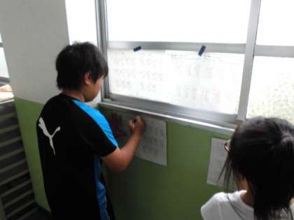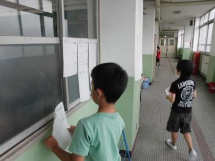 北校舎4Fの3・4年生のフロアでは自分で課題を選び,廊下や教室の後ろで答え合わせをしている児童がたくさんいました。