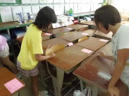 行く前にみんなで教室を掃除。
