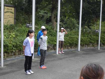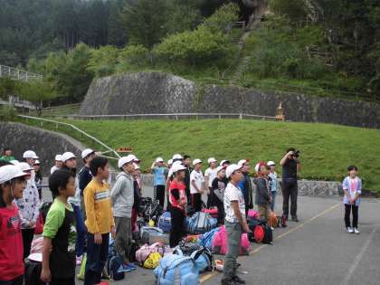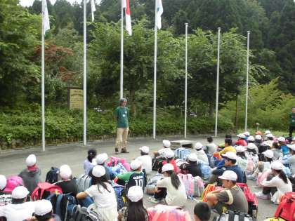 大きな声で校歌を歌い,山の家の所員さんの諸注意をききました。