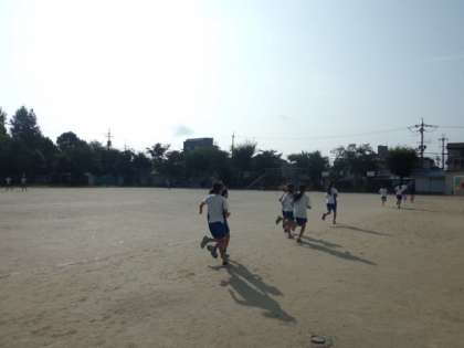 6年生が朝からがんばって練習しています。久々の好天で,青空のもと気持ちよく走っていました。山の家の5年生も頑張っていますが,学校の6年生もがんばっていますよ。