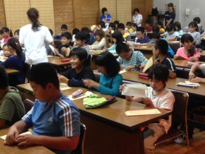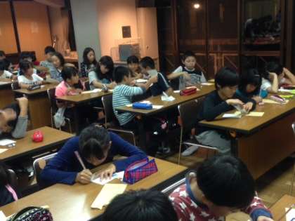 夕食後は家族へのお手紙をかくときです。突然のサプライズに恥ずかしそうな顔,うれしそうな顔,照れた顔。日ごろ感じていても口に表せないでいる心の思いを文字に表そうと真剣に取り組み始めています。届く日をお楽しみに。