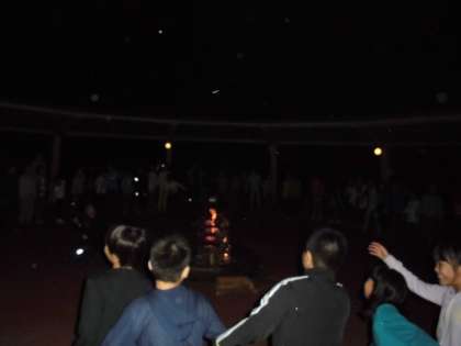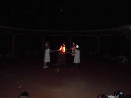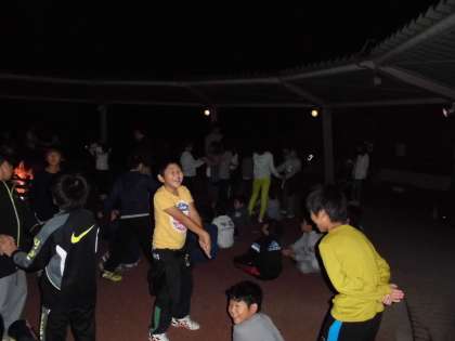 途中で音楽が止まっても大声で自分たちで歌うほど,みんな我を忘れキャンプファイヤーを楽しみました。