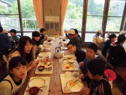 山の家での最後の朝食。もりもり食べて最後の活動に備えてください。