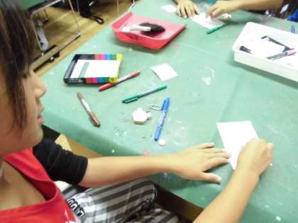 いろいろな形の木片を組み合わせて,ようやく完成しました。