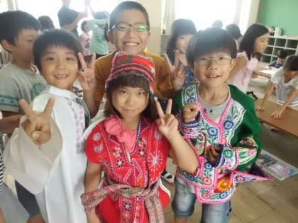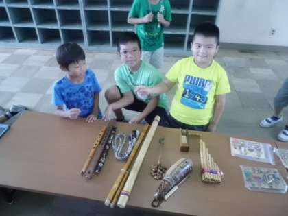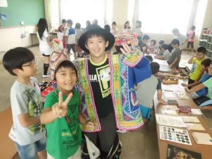 今月の思いやりの日の学習は国際理解教育として,南米ペルーの国に焦点を当て,学習を進めています。民族博物館から衣装や楽器,生活に関わる展示物をお借りして学習しています。衣装を着せてもらってみんなとても楽しそうに学習していました。日本の裏側にある遠く離れた国ですが,日本の文化と似ている所もたくさん見つけたようですね。いつかペルーの人と出会って仲よくなれるといいですね。