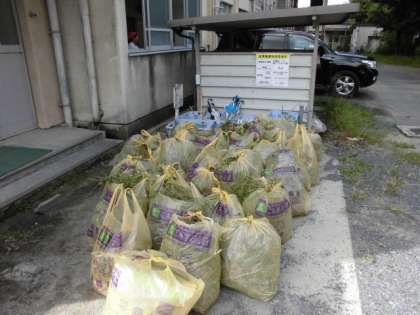 ゴミ捨て場が雑草の入った袋でいっぱいになりました。