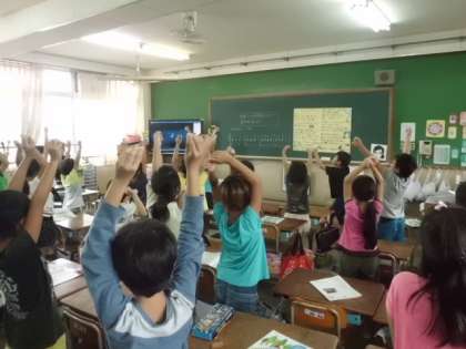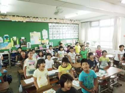 運動会でなかよし学級のお友だちといっしょに演技する曲『夢日和(ゆめびより)』を歌っていました。みんなお気に入りのようで,かなりノリノリで歌っていました。運動会本番の演技もノリノリで頼みますよ。