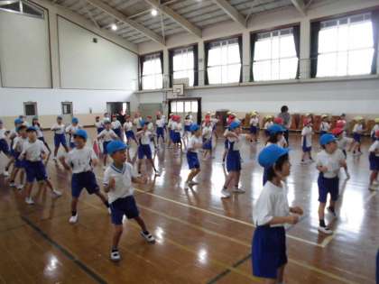 体育館から元気な声がきこえてきます。2年生の団体演技は「DANCE EARTH PARTY in 川岡東』です。
