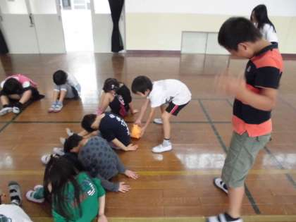 10月はハロウィンということで,「ハンカチ」落としではなく,「かぼちゃ」落とし?!をしました。