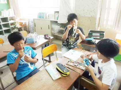 作品がかなりできあがってきました。みんなとてもていねいに色づけしています。できあがった作品を誇らしげに見せてくれました。