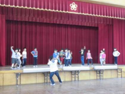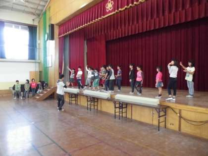 おや,舞台の上では子どもたちが奇妙な踊りを・・・。