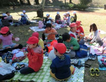 秋の宝物が袋にいっぱいになった後は,お腹をいっぱいにする時間です。