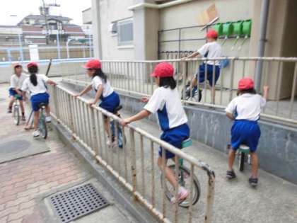 技術的にも難しい一輪車や竹馬にも挑戦しています。
