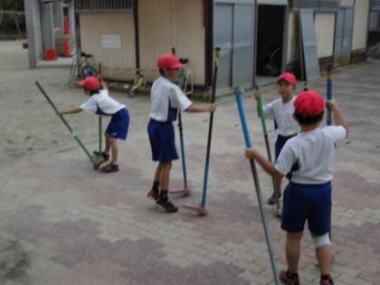いろいろな用具を使って遊び,運動能力を高めている2年生。