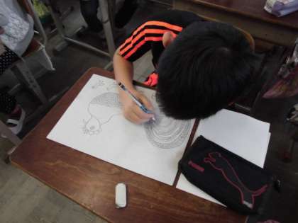 今日はカーボン紙をつかってアイデアスケッチを木版に写しとる活動をしました。