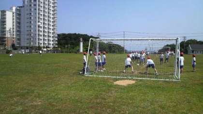 選択スポーツの様子です。サッカー・ソフトバレー・ハンドベース・フリスビー・ドッヂボールを楽しみました。