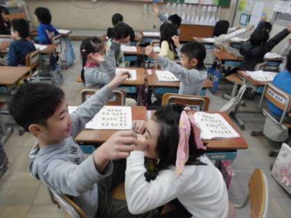 大きな声を出して,日本に伝わるわらべ歌を楽しみました。