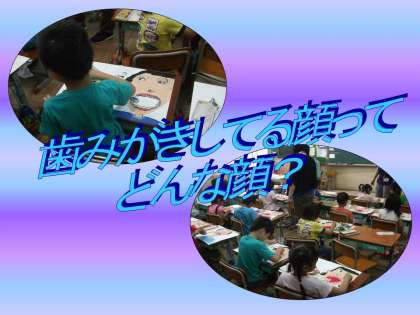 歯みがきをしている顔を描きました。自分の歯ってこんな風になってるんですね。