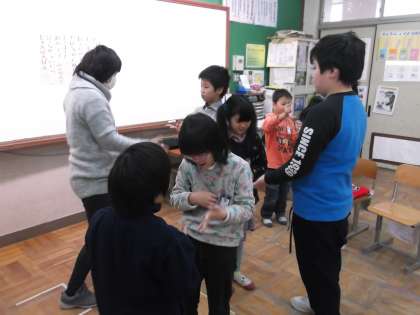 歌で自己紹介しながら打解けました。そして,手遊びをしあってコミュニケーションを深めました。