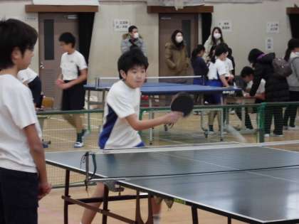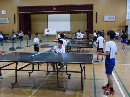 20日(土)松陽小体育館にて,西京東支部部活動「卓球」の交歓会が開かれました。本校からも5年生が11名参加して練習の成果を発揮しました。