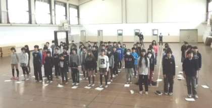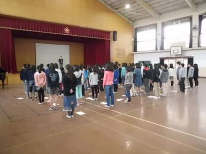 体育館で練習を始めています。とてもおだやかな美しい歌声です。みんな6年間の思い出をかみしめながら,歌っています。
