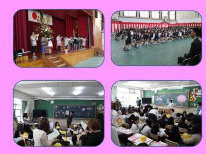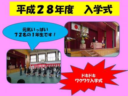 本日,入学式が行われました。72名の1年生が希望に胸をふくらませ,元気いっぱいに入学しました。とても立派な態度でしっかりと式に参加できました。月曜日からも元気よく登校しましょうね。