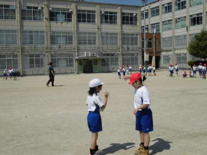 4年生最初の体育は「学年あそび・からだほぐし」をしました。