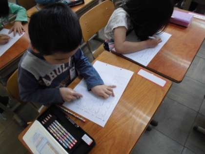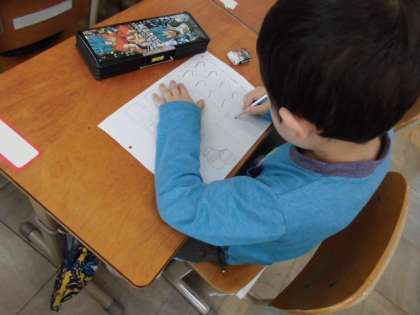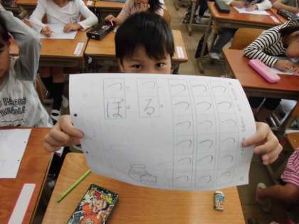 「すーっとゆっくり曲がって,さっとはらう」みんな上手に書けました。