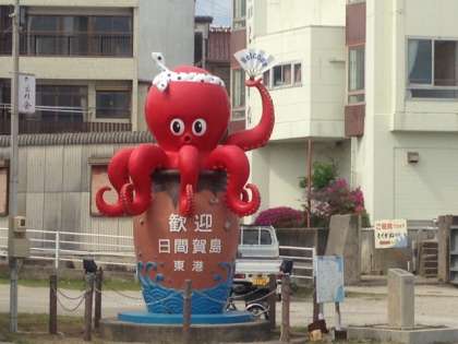 日間賀島に到着しました。名物のタコがお出迎えしてくれています。
