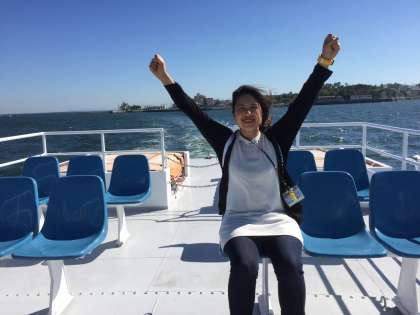 日間賀島に別れをつげ,次の場所へ。日間賀島のみなさん,ありがとう。そしてさようなら。先生たちも別れを惜しんでいます。