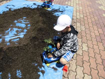 しっかり育つようにふんわり土をかぶせ,最後に水をあげました。