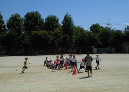 バトンパスを何度も練習して,スムーズに次の走者にバトンを渡せるようになってきました。