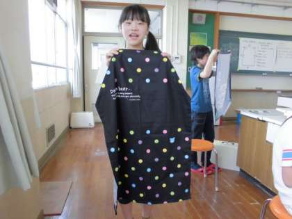 家庭科はエプロン作りの学習に入りました。