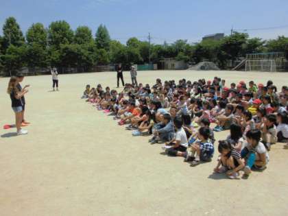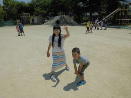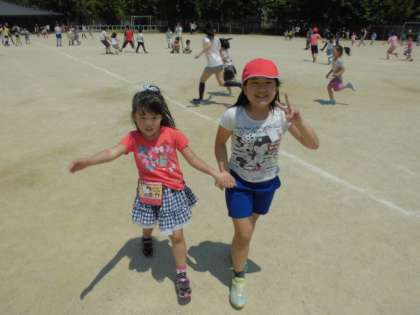 1年生と仲良く遊ぶことを目標に運動場で元気いっぱい活動しました。