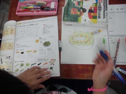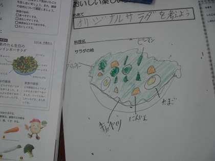 調理実習を終え,今日は「オリジナルサラダ」を考えました。