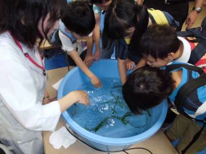 生き物コーナーではザリガニ釣り、魚などを触ることが出来ました。