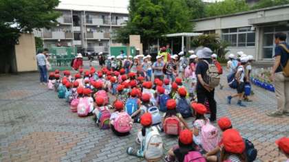 少し天気が心配でしたが,みんな元気に宝ヶ池子どもの楽園に向けて出発しました。楽しく活動してきて下さいね。