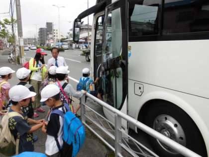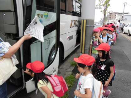 バスに乗り,宝ヶ池子どもの楽園へ向けて出発します。