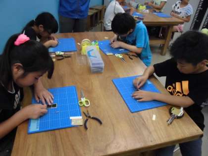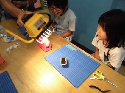 工房学習では,光電池を使っておもちゃ作りをしました。