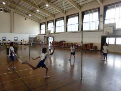 写真は上から「卓球」「手芸」「バドミントン」クラブの様子です。